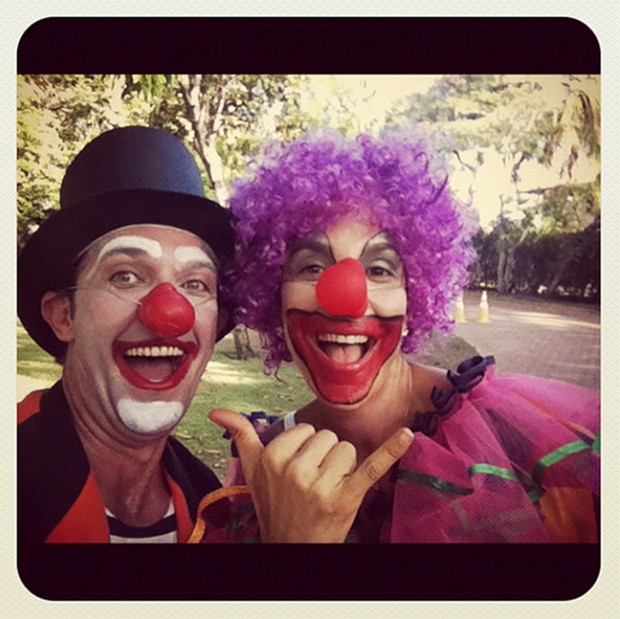 Ivete Sangalo se vestiu de palhaça e mostrou aos seus seguidores no Instagram o resultado final da fantasia. A cantora baiana compartilhou a imagem na rede social na tarde desta quinta-feira, 7. "Nosso bailinho de Carnaval bombando! Eu e Ed bala com sua fanfarra mágica", escreveu ela, na legenda.
